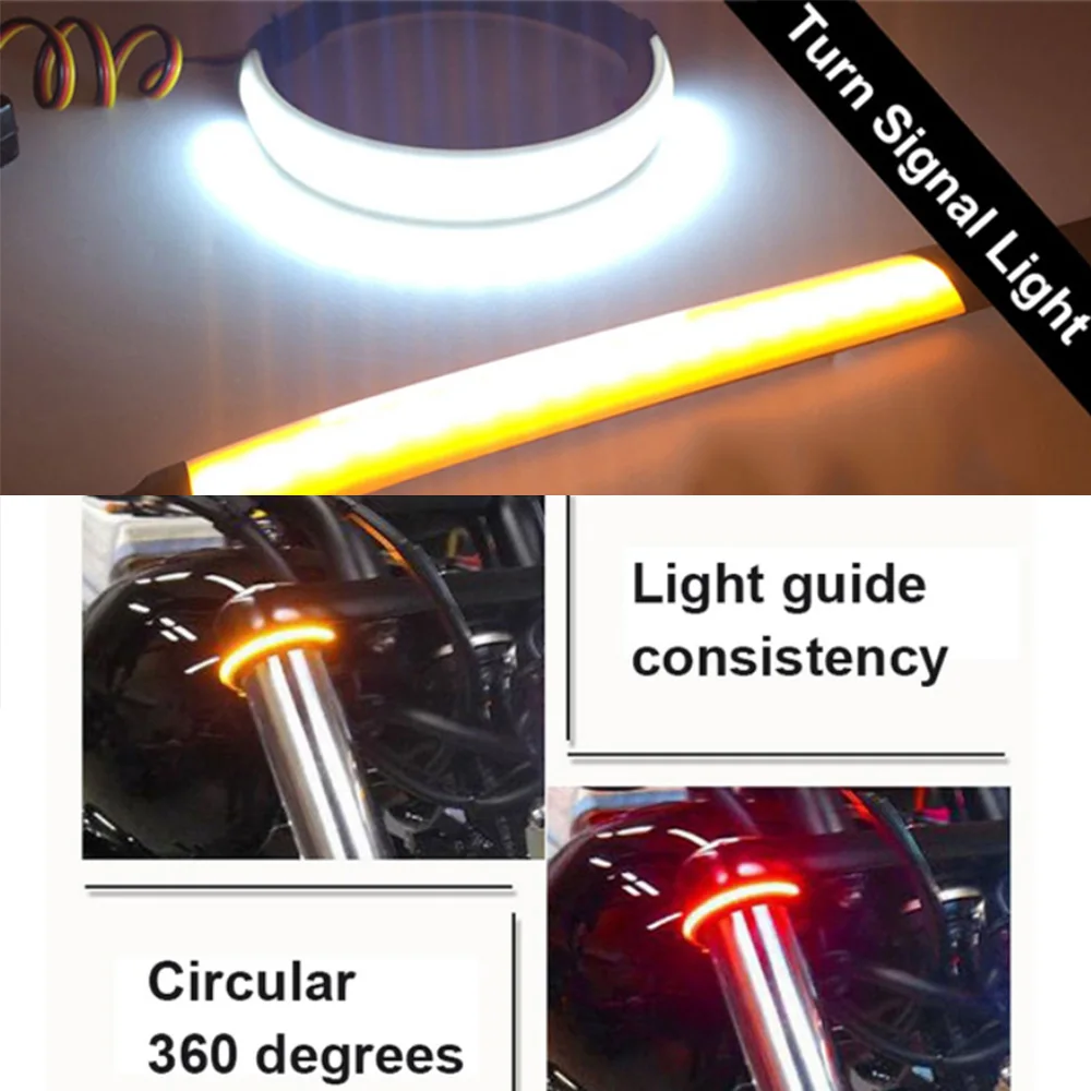 | New Arrival 2pc Amber LED Motorcycle Fork Light 120 Degree Viewing Angle Turn Signal Light Strip For Clean Custom Look |