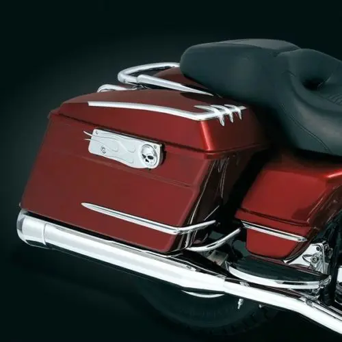 This chrome highlight brings out the sweeping style of your FLH saddlebags.