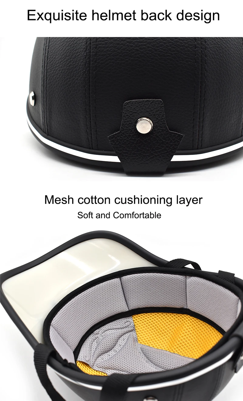 【Effectively Protection】- Half motorcycle helmet with longer brim and shockproof foam inner, Can better protect your head from the sun and rain, and help absorb and disperse the energy of an impact.