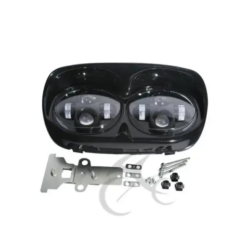 | Dual LED Headlight Assembly Kit Motorcycle Lights For Harley Road Glide 04-13 12 |